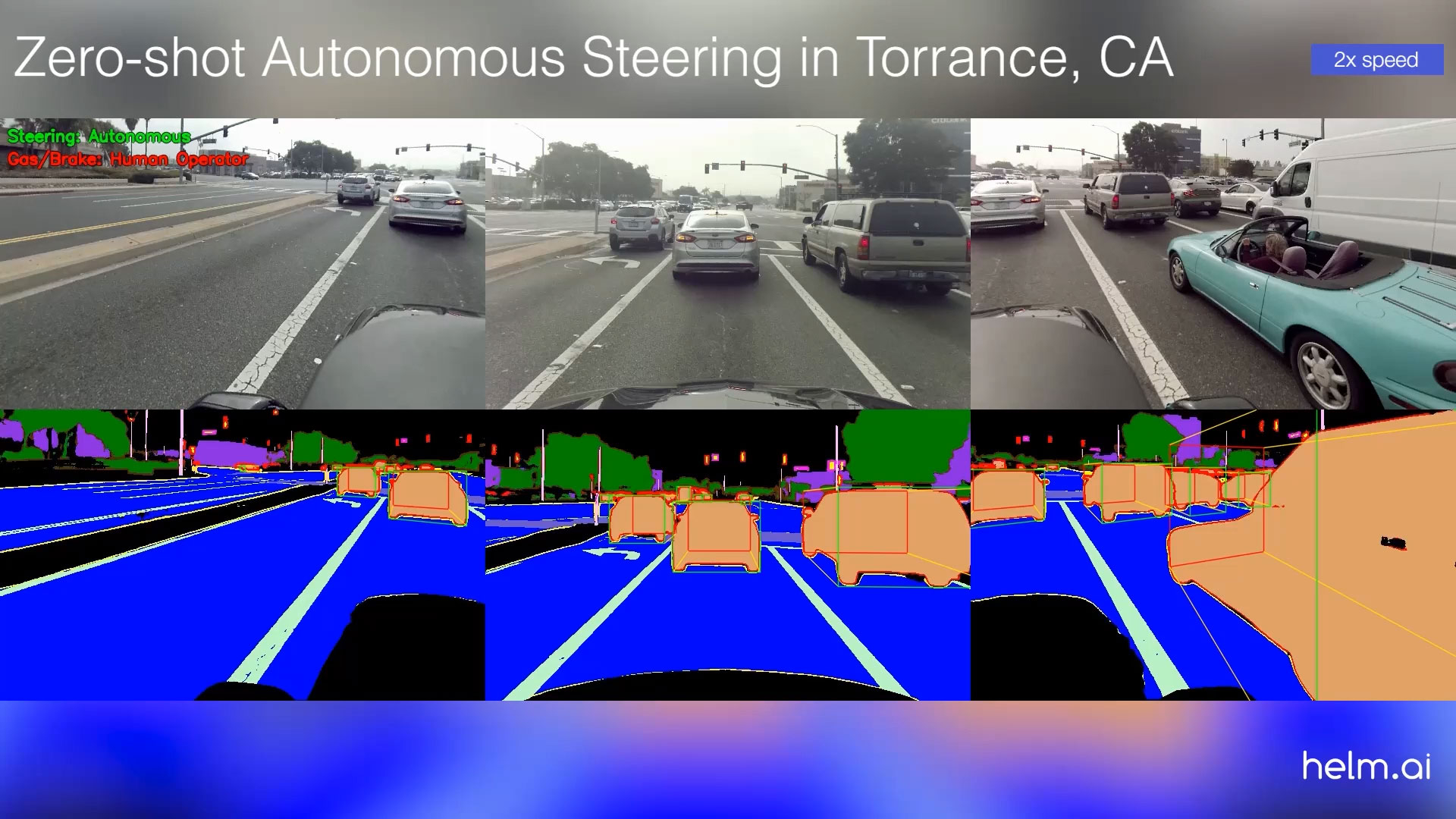 Während die Branche darum wetteifert, massive Black-Box-„End-to-End”-Modelle zu entwickeln, die Petabytes an Daten benötigen, um die Fahrphysik von Grund auf zu erlernen, hat Helm.ai eine skalierbare Alternative vorgestellt. Heute veröffentlichte das Unternehmen eine Benchmark-Demonstration seines Vision-Only-KI-Fahrers, der mit Zero-Shot-Erfolg durch die komplexen Straßen von Torrance, Kalifornien, navigiert – und dabei Spurhaltung, Spurwechsel und Abbiegungen an städtischen Kreuzungen meistert, ohne diese Straßen zuvor gesehen zu haben. Sehen Sie hier die Zero-Shot-Fähigkeiten des KI-Fahrers in Aktion während einer 20-minütigen Fahrt ohne Lenkungsunterbrechung: www.helm.ai/zeroshot-autonomous-steering.