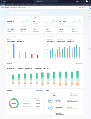 - Flexible billing capabilities help businesses monetize their offerings through standard, project-based, subscription, or usage-based billing.