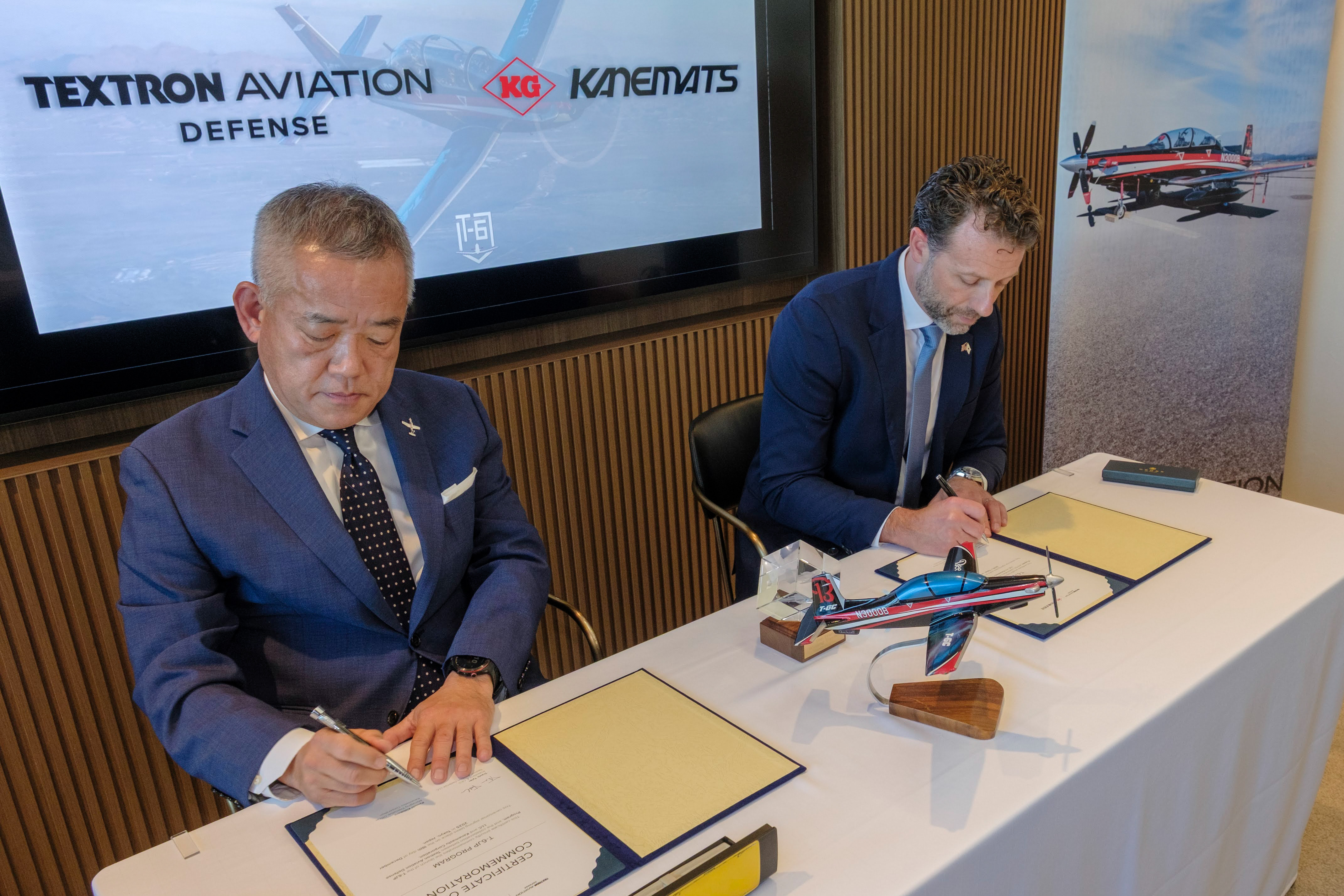 WICHITA, Kansas, USA--(BUSINESS WIRE)--Textron Aviation Defense LLC, ein Unternehmen der Textron Inc. (NYSE:TXT), hat heute den ersten Liefervertrag für das integrierte Trainingssystem Beechcraft T-6JP Texan II an die japanische Luftverteidigungskräfte (JASDF) in Zusammenarbeit mit Kanematsu Corporation unterzeichnet. Der erste Vertrag beinhaltet zwei Flugzeuge vom Typ Beechcraft T-6JP Texan II sowie Schulungsunterlagen für Fluglehrer und Flugzeugwartungstechniker. Die Auslieferung der ersten beiden Flugzeuge ist für das Jahr 2029 vorgesehen. Mit dem Abschluss weiterer Verträge wird gerechnet.