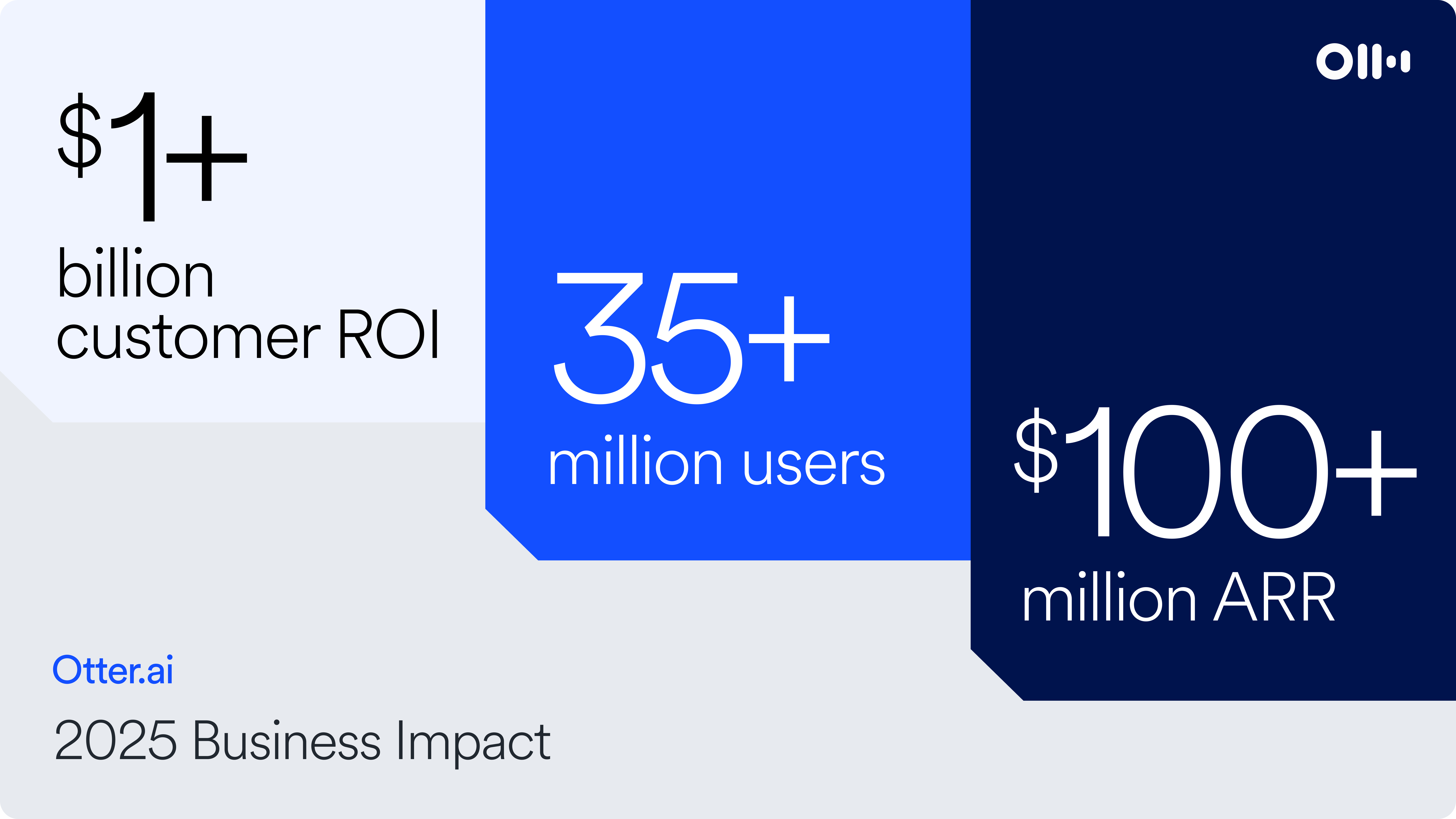 MOUNTAIN VIEW, Calif.--(BUSINESS WIRE)--Otter.ai, the leading AI meeting agent tool, announced a landmark year of achievements that have established the company as the definitive corporate knowledge base for the enterprise. From crossing $100 million in ARR to launching the industry's first AI Meeting Agent suite, 2025 marks Otter.ai's evolution from meeting transcription tool to the comprehensive corporate knowledge base that powers how organizations capture, search, and activate their most valuable asset: institutional knowledge.