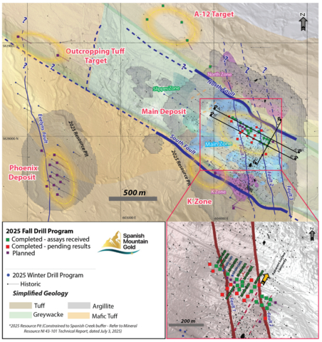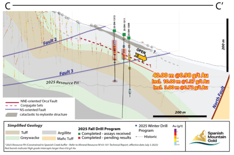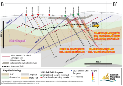 VANCOUVER, British Columbia--(BUSINESS WIRE)--Spanish Mountain Gold Ltd. (the "Company" or "Spanish Mountain Gold") (TSX-V: SPA) (FSE: S3Y) (OTCQB: SPAUF) is pleased to provide additional assay results from six exploration drill holes within the Orca Fault target trend and five exploration drill holes from the A12 target that were completed as part of its 2025 Fall Diamond Drill program (“2025 Fall Drill Program”) for the Spanish Mountain Gold (“SMG”) project, which is located in the Cariboo Gold Corridor, British Columbia, Canada.
