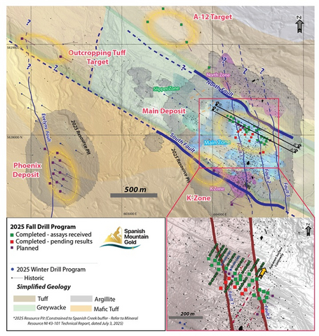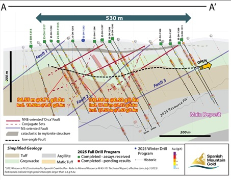 VANCOUVER, British Columbia--(BUSINESS WIRE)--Spanish Mountain Gold Ltd. (the “Company” or “Spanish Mountain Gold”) (TSX-V: SPA) (FSE: S3Y) (OTCQB: SPAUF) is pleased to provide additional assay results from five (5) exploration drill holes within the Orca Fault target trend that were completed as part of its 2025 Fall Diamond Drill program (“2025 Fall Drill Program”) for the Spanish Mountain Gold (“SMG”) project, which is located in the Cariboo Gold Corridor, British Columbia, Canada.