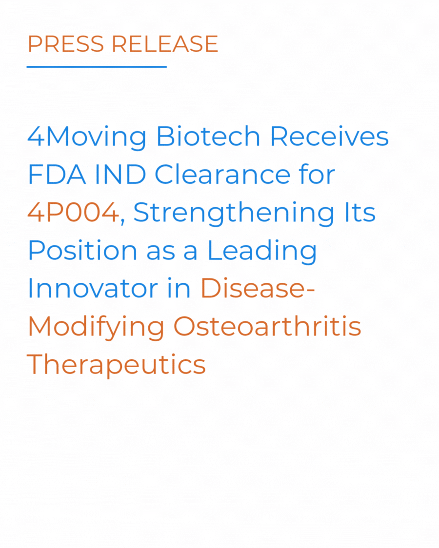 4Moving Biotech Receives FDA IND Clearance for 4P004, Strengthening Its Position as a Leading Innovator in Disease-Modifying Osteoarthritis Therapeutics