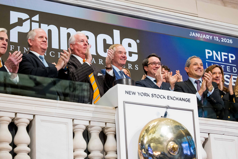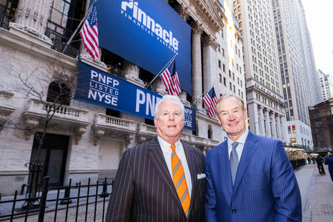 NEW YORK--(BUSINESS WIRE)--Pinnacle Financial Partners (NYSE: PNFP) President and CEO Kevin Blair rang the New York Stock Exchange opening bell Tuesday with his executive leadership team, Pinnacle Founder and Board Chair Terry Turner and former Pinnacle CFO Harold Carpenter. The event marks the closing of the firm’s merger with Synovus Financial Corp. and its new NYSE listing.