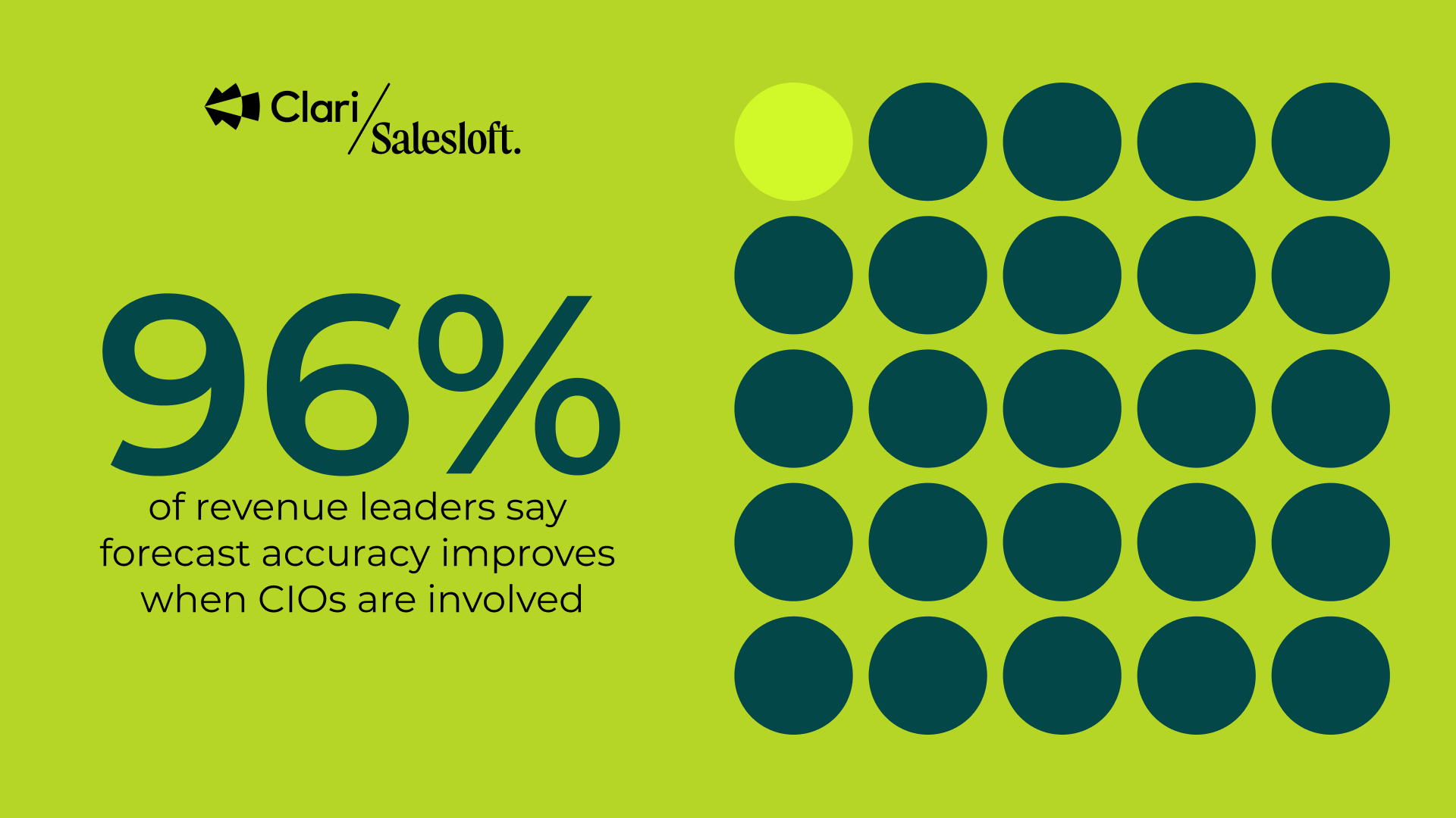 CIOs are moving from managing systems to shaping revenue data strategy. Nearly all (96%) of revenue leaders say CIO involvement improves forecast accuracy, and 89% expect their influence to expand even further next year as enterprises prioritize unified data models, control, and accountability.