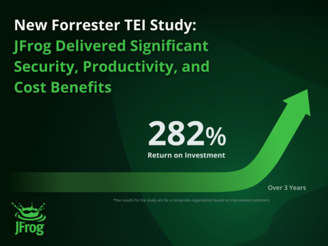 SUNNYVALE, Calif.--(BUSINESS WIRE)--JFrog Ltd (Nasdaq: FROG), the Liquid Software company and creators of the award-winning JFrog Software Supply Chain Platform, today released the findings of a Forrester Consulting Total Economic Impact™ (TEI) study, which details how enterprises using the JFrog Platform for software supply chain security experienced substantial improvements in security posture, developer productivity, audit readiness, and toolchain efficiency. According to the commissioned study, a composite organization using the JFrog Platform realized a 282% return on investment, $5.4 million in total benefits over three years, and a payback period of less than six months.