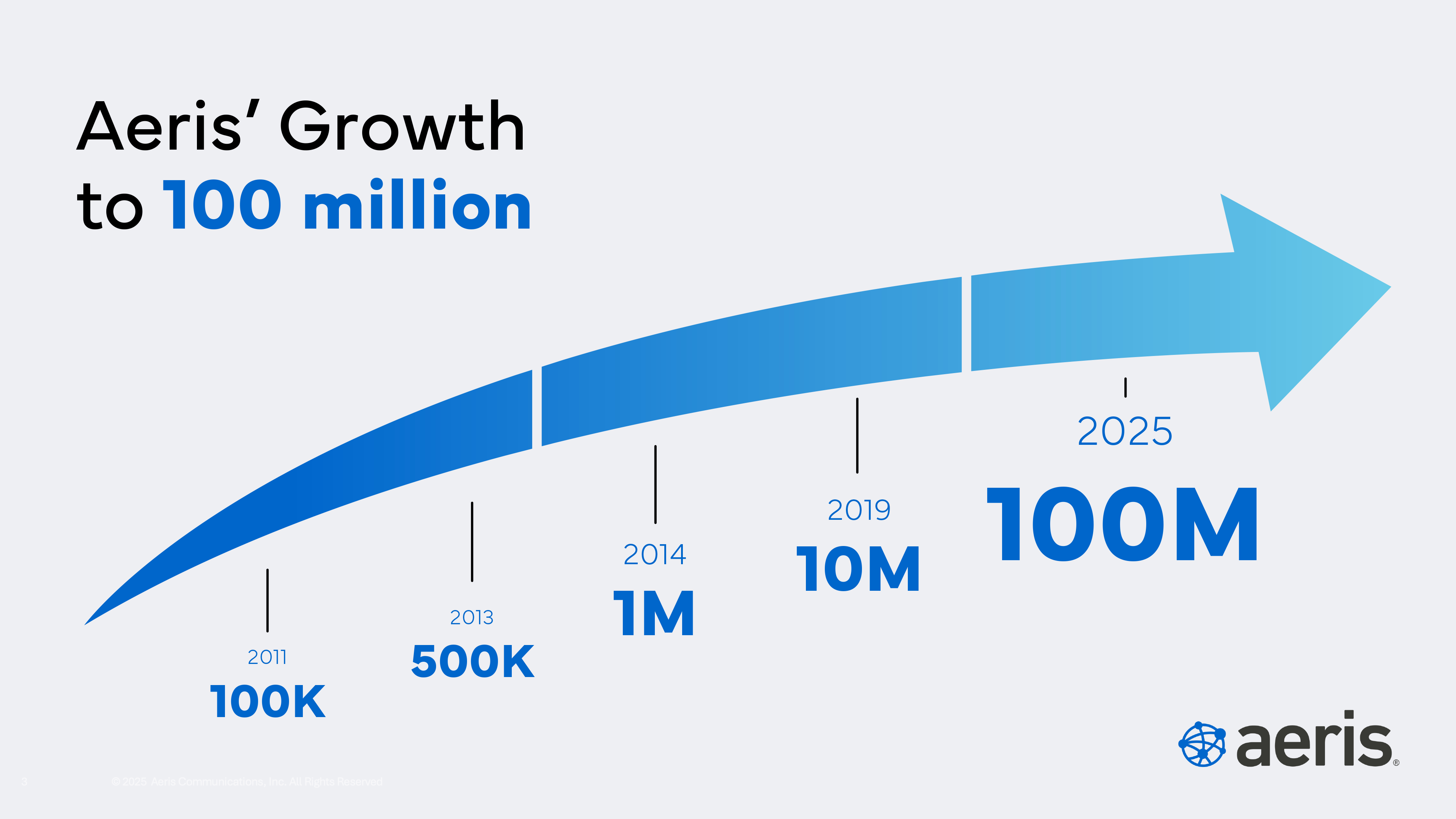 Surpassing the 100 million threshold, Aeris continues to outpace market growth. According to a report from Berg Insight, global cellular IoT connectivity grew by approximately 30 percent over the same period, making Aeris' expansion nearly 3x the industry average. This growth validates Aeris’ leadership and its commitment to simplifying global deployments through AI-driven connectivity management platform innovation, IoT cybersecurity and automotive leadership, and a strong partner ecosystem.