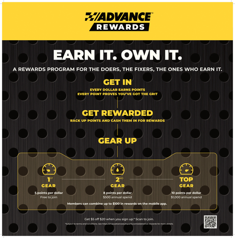 "Advance Rewards delivers the value that our customers are asking for in a loyalty program,” said Bruce Starnes, executive vice president, chief merchant at Advance Auto Parts. "At the same time, it gives us more tools to engage with them, in part through personalized experiences. We put the customer first in everything we do at Advance, which is why we've added exciting new features that recognize customer engagement while maintaining familiarity embedded in the core structure of the program.”