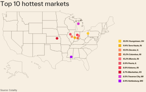 The data provided are for use only by the primary recipient or the primary recipient's publication or broadcast. This data may not be resold, republished or licensed to any other source, including publications and sources owned by the primary recipient's parent company without prior written permission from Cotality. Any Cotality data used for publication or broadcast, in whole or in part, must be sourced as coming from Cotality, a data and analytics company. For use with broadcast or web content, the citation must directly accompany first reference of the data. If the data are illustrated with maps, charts, graphs, or other visual elements, the Cotality logo must be included on screen or website. For questions, analysis or interpretation of the data, contact Charity Head at newsmedia@Cotality.com. Data provided may not be modified without the prior written permission of Cotality. Do not use the data in any unlawful manner. The data are compiled from public records, contributory databases and proprietary analytics, and its accuracy is dependent upon these sources.