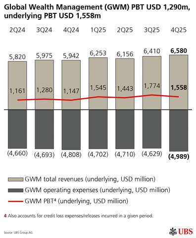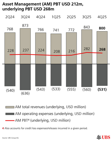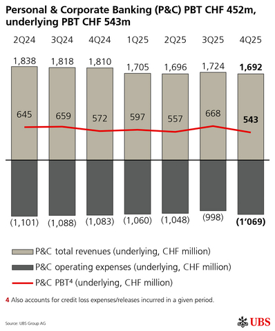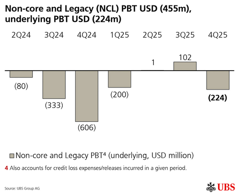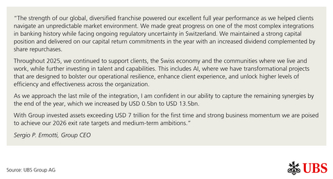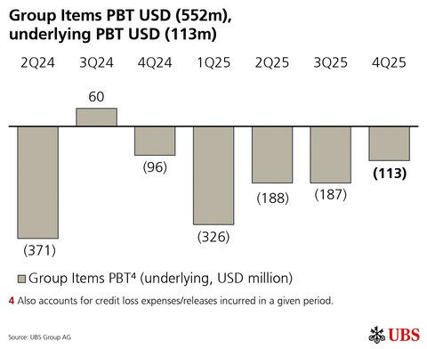 Information in this news release is presented for UBS Group AG on a consolidated basis unless otherwise specified. 1 Underlying results exclude items of profit or loss that management believes are not representative of the underlying performance. Underlying results are a non-GAAP financial measure and alternative performance measure (APM). Refer to “Group Performance” and “Appendix-Alternative Performance Measures” in the financial report for the fourth quarter of 2025 for a reconciliation of underlying to reported results and definitions of the APMs.