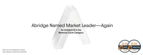 SAN FRANCISCO--(BUSINESS WIRE)--Abridge, the leading enterprise-grade AI platform for clinical conversations, was named #1 Best in KLAS for Ambient AI in the Revenue Cycle Management category for the second year in a row.