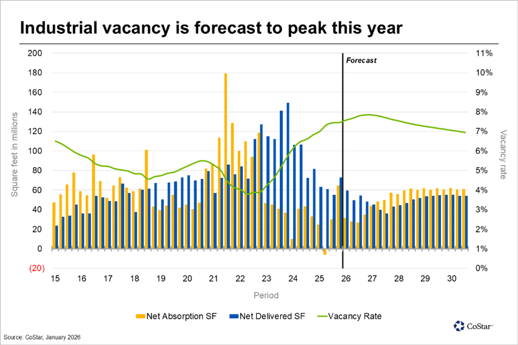CoStar Expects U.S. Industrial Vacancy to Peak This Year; Rent Growth Remains Unchanged Through 2026