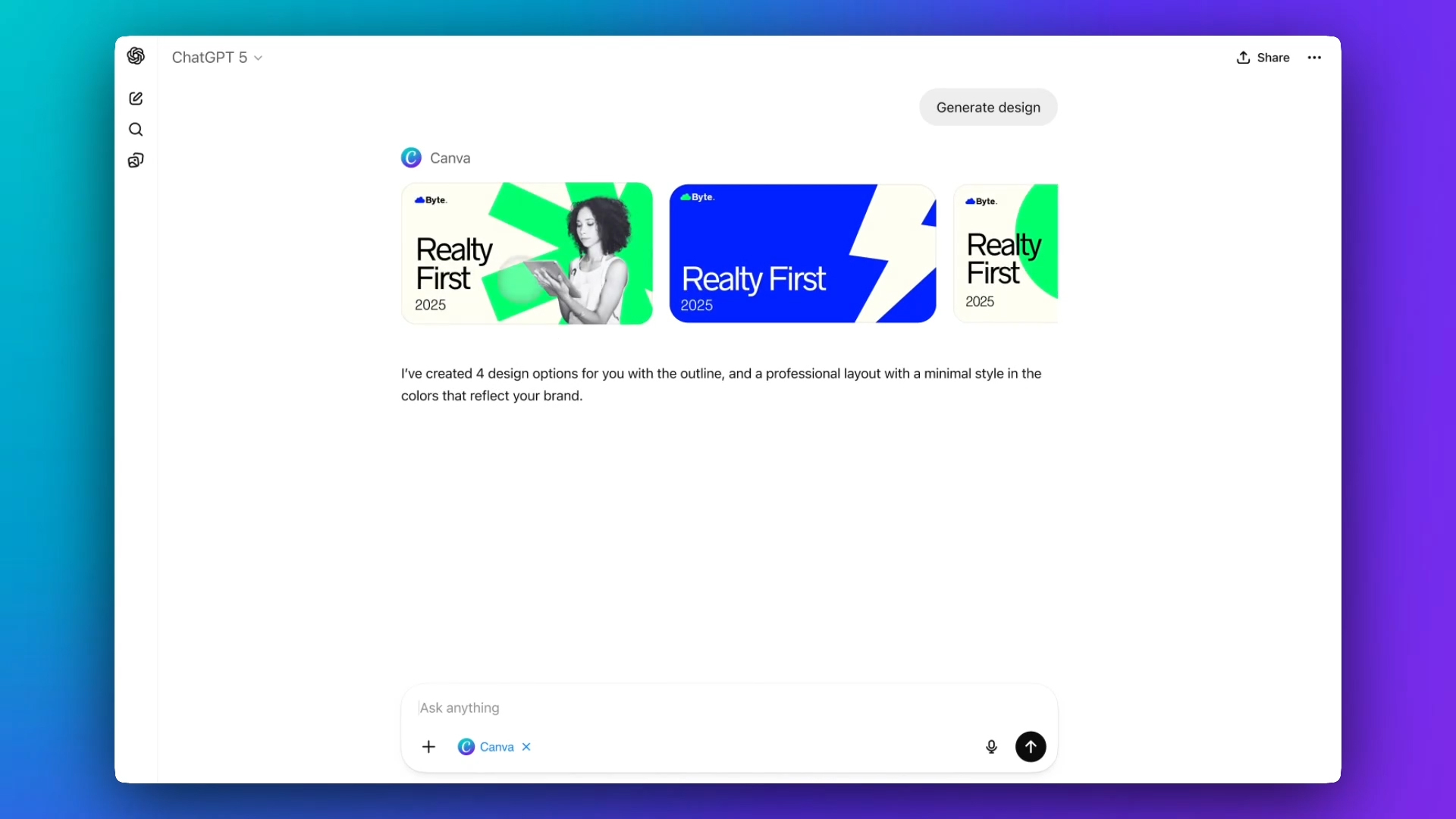 Ontwerpen die in ChatGPT zijn gemaakt, komen nu tot leven in Canva, direct in lijn met het merk en klaar voor gebruik
