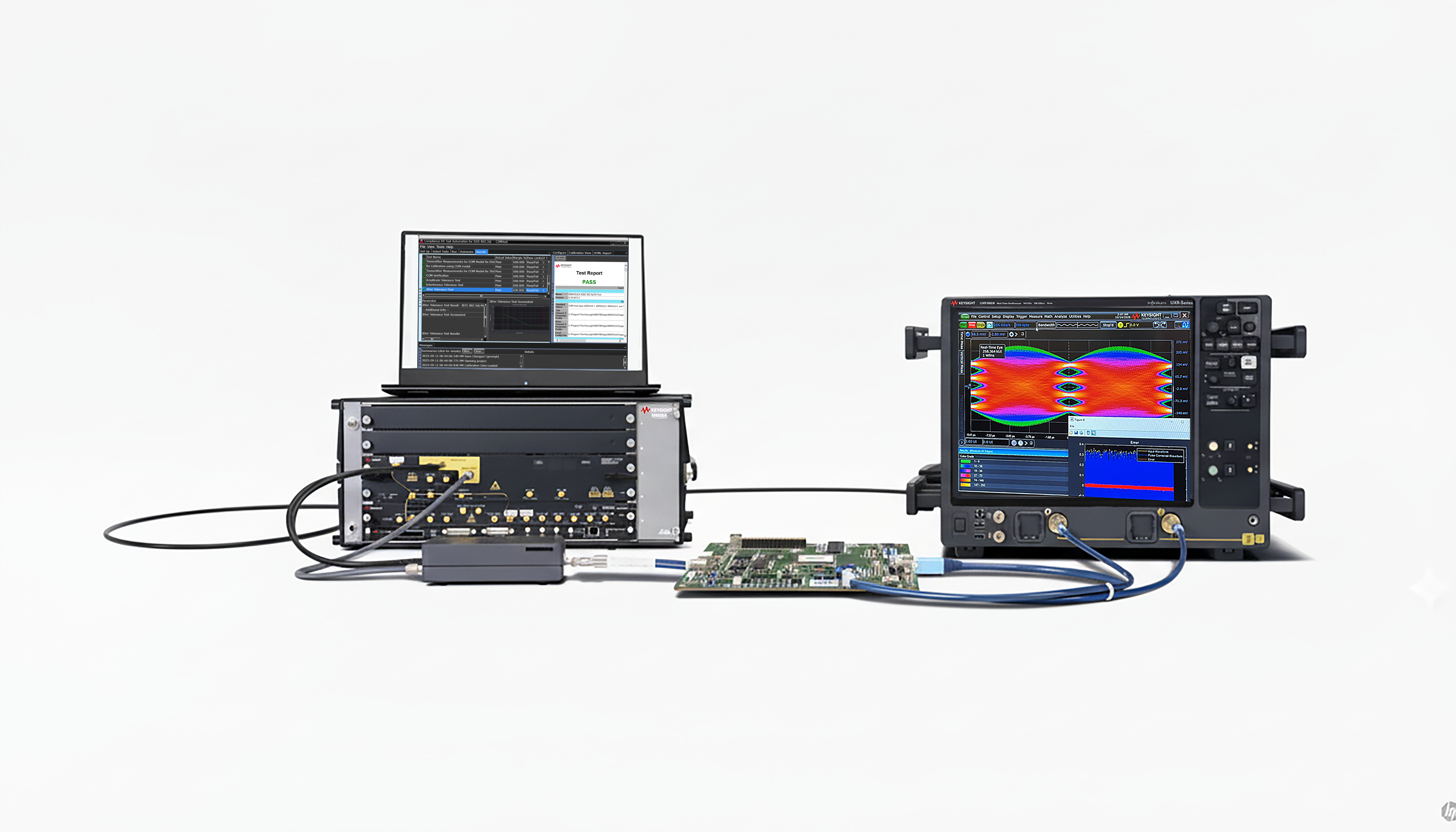 Keysight UALink™ 200G receiver conformance test software accelerates validation of UALink™ 200 Gb/s interfaces critical to AI scale-up networking. By integrating the Keysight M8050A 120 Gbd High-Performance BERT and Keysight Infiniium UXR Real-Time Oscilloscope, the solution simplifies the stressed-signal calibration and delivers comprehensive measurement coverage for fast, reliable conformance testing and debugging.