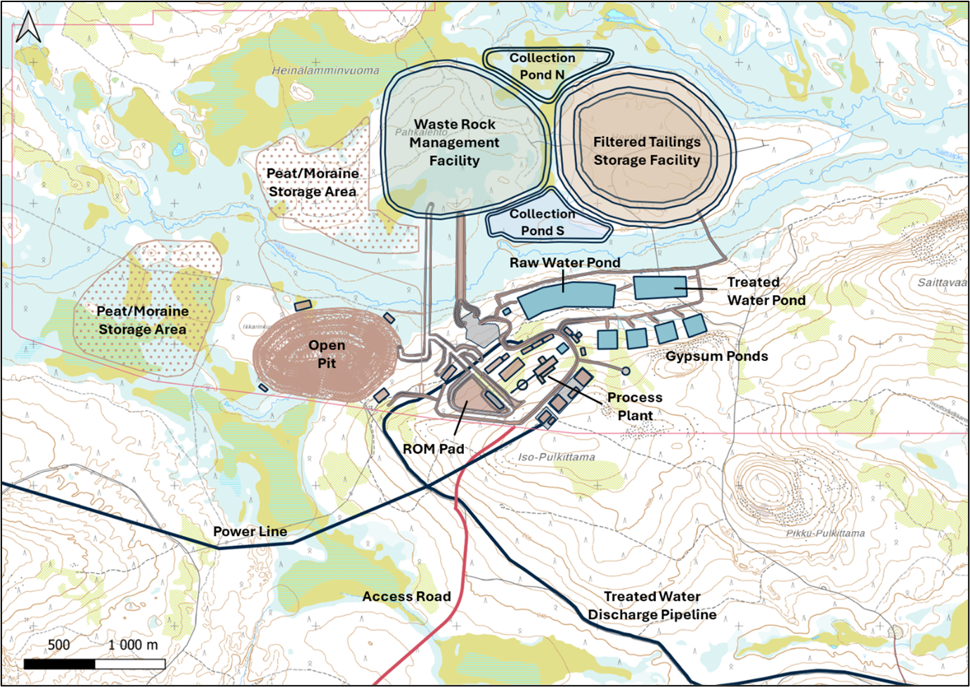 The FS and the EIA are based on a design and layout that closely align with the PFS, with all mining, processing and waste infrastructure contained within the Ikkari project boundary.