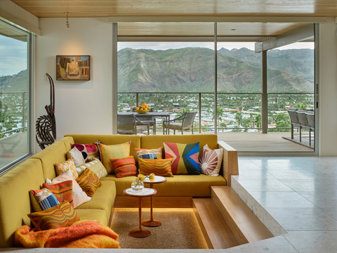 In her YouTube series following renovations on the home, Trina Turk noted the importance of an indoor-outdoor connection, achieved through walls of glass or sliding doors that open onto a porch or patio, blurring the line between interior and exterior space.
