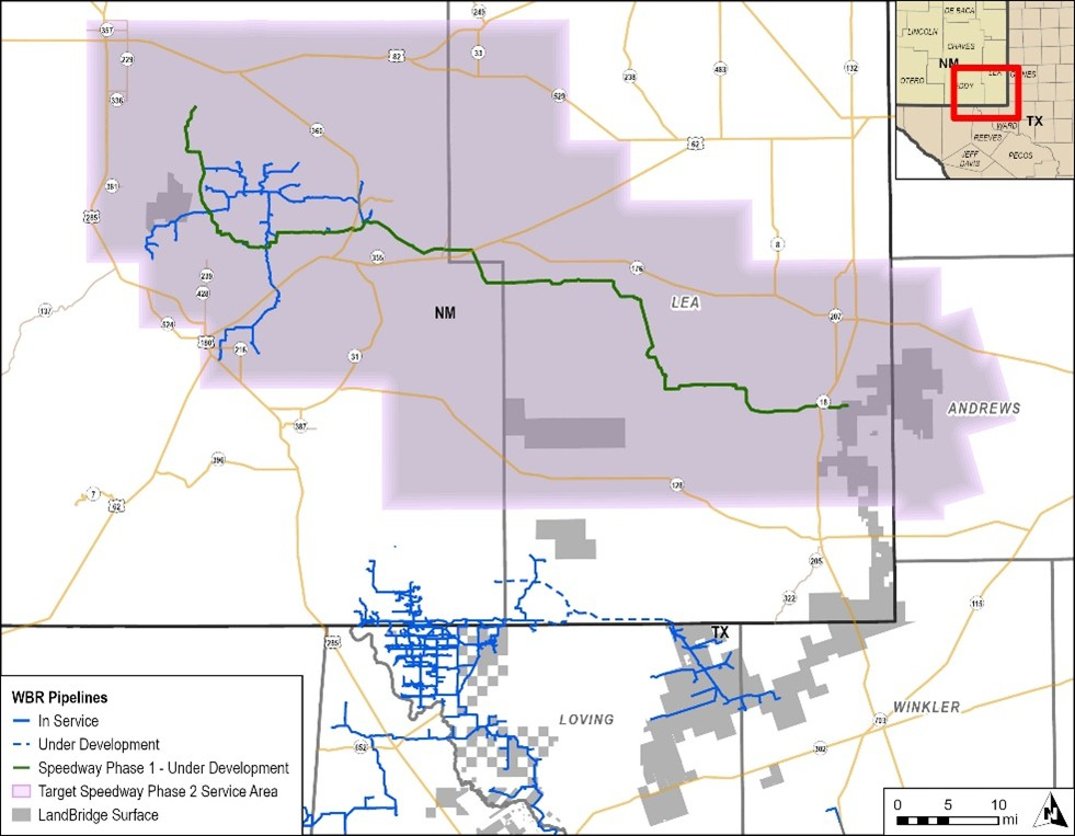 The Speedway Phase II Pipeline will facilitate the transportation of produced water in Eddy and Lea counties, New Mexico to out-of-basin pore space located in the Central Basin Platform that is owned by WaterBridge’s affiliate, LandBridge Company LLC (NYSE: LB). The Speedway Phase II Pipeline will service customers and demand incremental to the previously announced Speedway Pipeline project, for which a final investment decision was announced in September 2025. The Speedway Phase II Pipeline is anticipated to provide incremental throughput capacity of up to 500,000 barrels per day (bpd) in addition to the 500,000 bpd throughput capacity for the initial phase of the Speedway Pipeline.