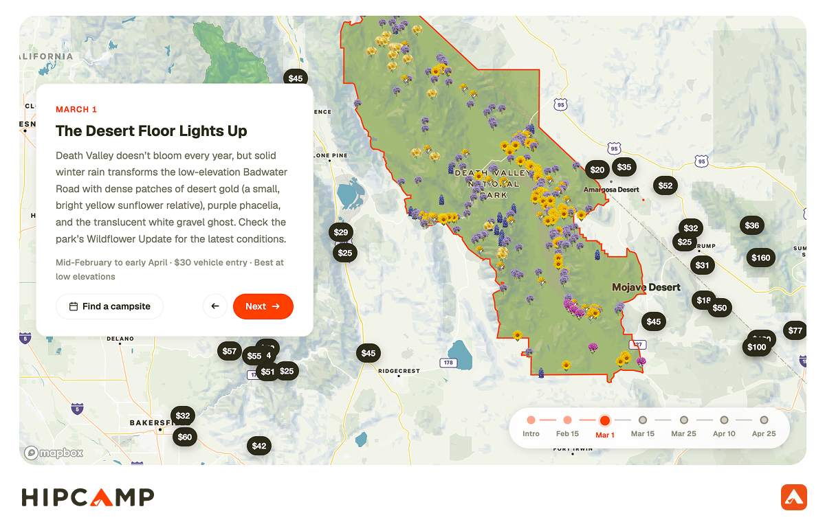 - Explore the interactive Superbloom Forecast: hipcamp.com/en-US/stories/superbloom