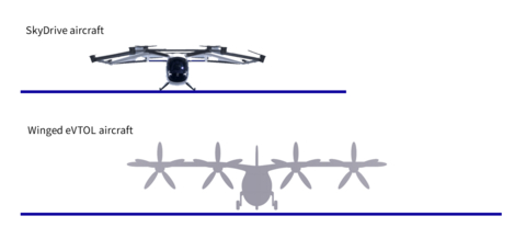 The SKYDRIVE’s compact dimensions allow for the use of smaller vertiports than those required by fixed-wing eVTOL designs.