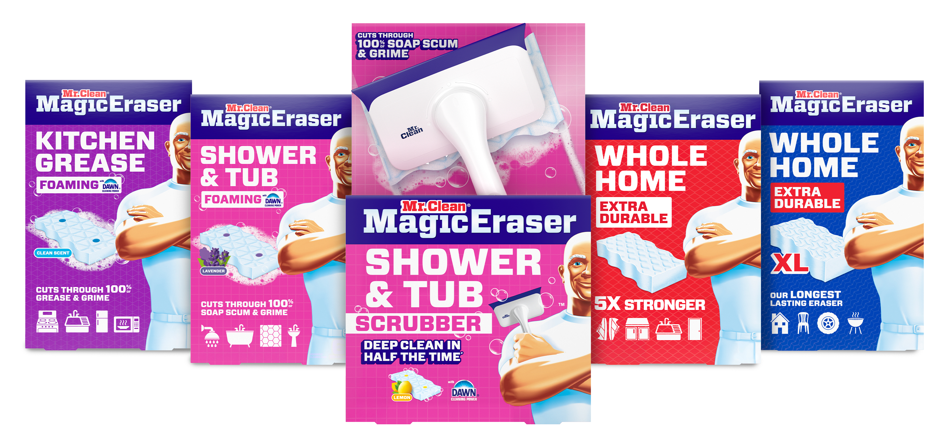 The Mr. Clean innovation includes: the biggest upgrade to Magic Eraser in 20 years, the new Shower & Tub Scrubber, and new scents for the Multi-Purpose Cleaner line-up.