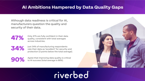 The Riverbed Global Survey ‘The Future of IT Operations in the AI Era’ examines AI readiness in manufacturing, with 62% of AI projects in pilot or development stages, and 90% of respondents agree that improving data quality is critical to AI success