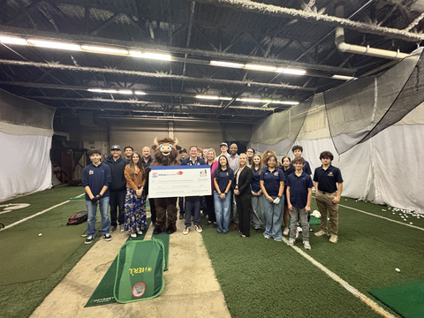 HilltopSecurities Chief Administrative Officer Clare Graca and Mo presented Brandon Moore and his students with $10,000 for the North East Educational Foundation. Moore is a teacher and golf coach at James Madison High School in San Antonio, Texas.