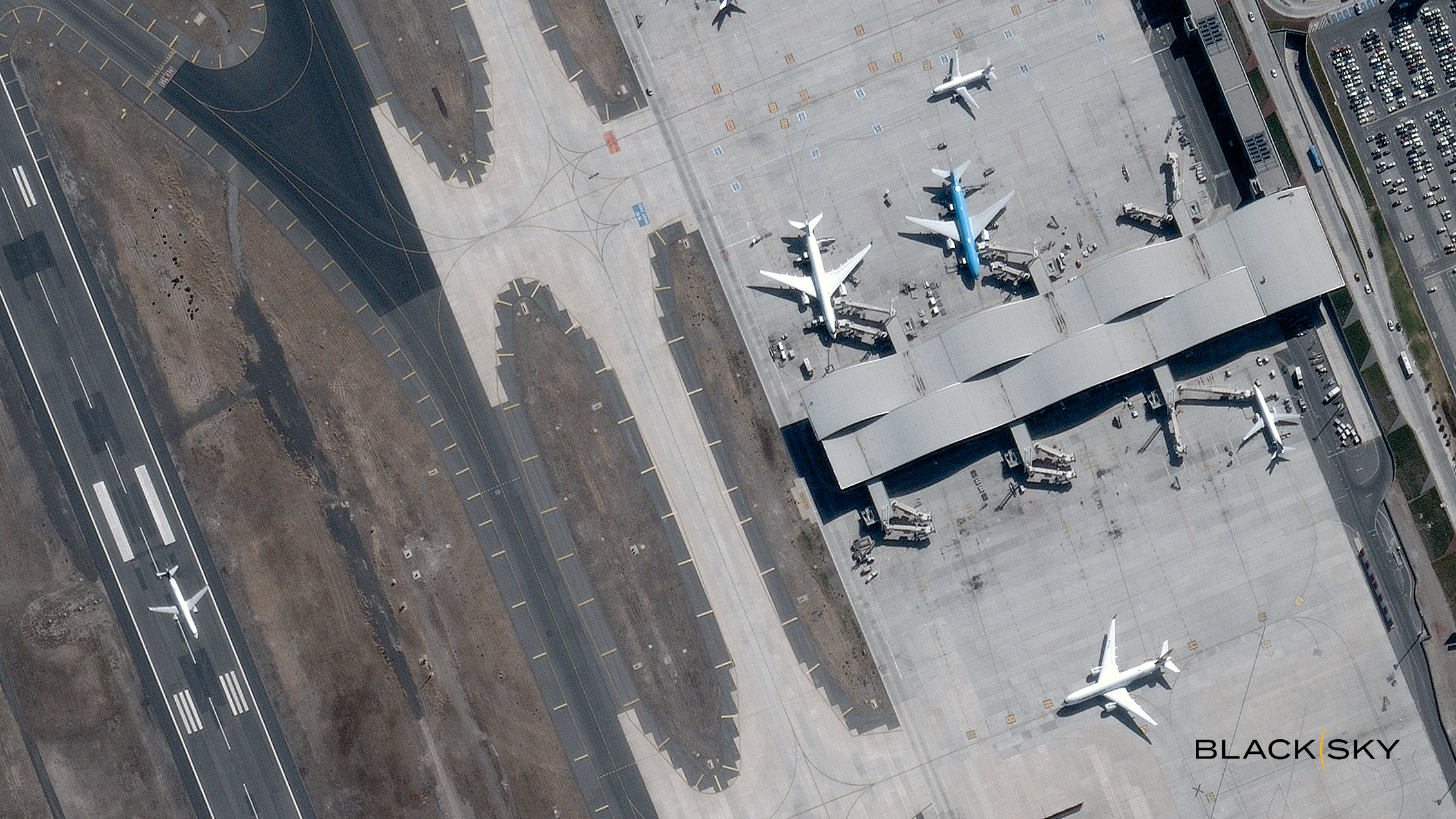 A Gen-3, unit four, very high-resolution image collected over Arturo Merino Benítez International Airport in Santiago, Chile demonstrates the timely operational value of high-cadence, space-based dynamic monitoring capabilities in support of strategic and tactical defense and intelligence missions. The BlackSky image, capturing an aircraft taking off from the airport, was collected March 8, 2026, at 11:31 a.m.