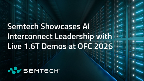 CAMARILLO, Calif.--(BUSINESS WIRE)--Semtech Corporation (Nasdaq: SMTC), a leading provider of high-performance semiconductor, Internet of Things (IoT) systems and cloud connectivity service solutions, will present live demonstrations of its portfolio of high-speed integrated circuits (ICs) at OFC 2026, booth #1812. Demonstrations will span 224G and 448G solutions for AI and data center interconnect applications, as well as XGS-PON (10 Gigabit Symmetrical Passive Optical Network) solutions for next-generation passive optical networks.
