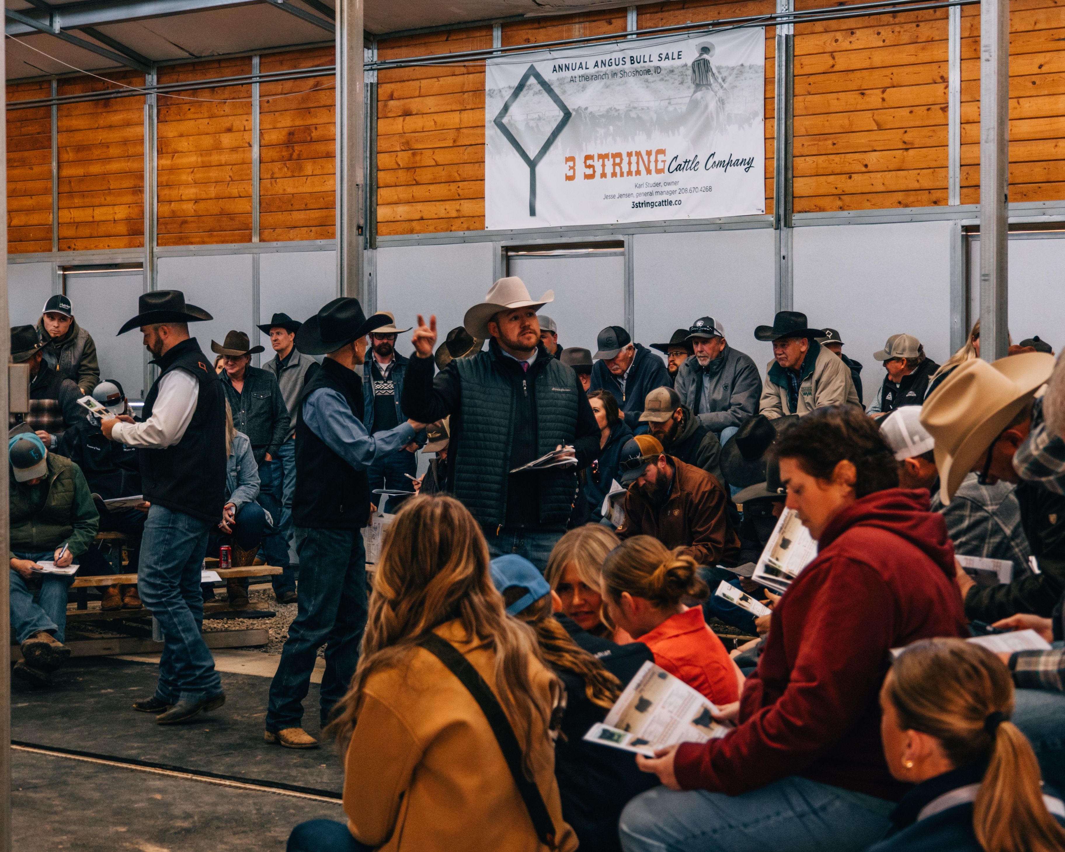 RUPERT, Idaho--(BUSINESS WIRE)--3 String Cattle Co., founded by Karl Studer and managed by Jesse Jensen, concluded another standout annual bull sale with record-setting results, drawing 72 buyers from across the western United States and generating $1,255,000 in total gross revenue. The sale, held at the operation’s southern Idaho ranch, drew 55 buyers in person and 17 participating online, representing producers from Idaho, Utah, Colorado, Nevada, Washington, Oregon, Montana, Texas, New Mexico, and California.