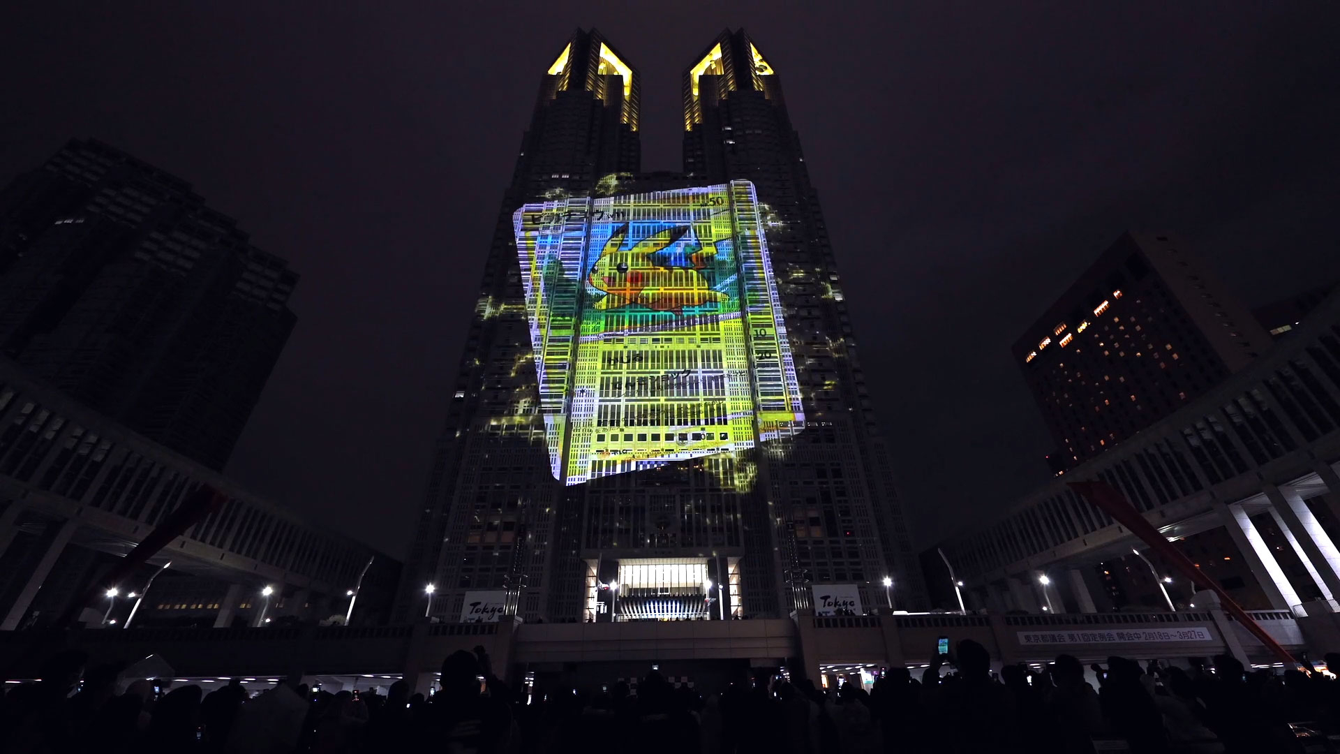 Inspirada en el adorado en todo el mundo Juego de Cartas Coleccionables Pokémon, esta obra de proyección cartográfica se proyectará sobre las paredes exteriores del edificio del Gobierno Metropolitano de Tokio.