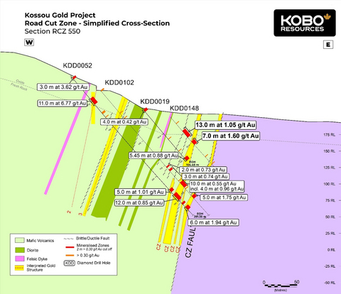 Kobo Resources Intersects Strong Gold Results Across All Three Zones at Kossou, Including 7.0 m at 5.06 g/t Au at the Road Cut Zone