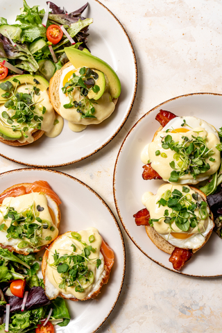 - Baked Eggs Benedict: It’s fitting that LPQ's first-ever Eggs Benedict is served on a flaky croissant roll baked in-house. It’s available in three variations (Avocado, Bacon, and Smoked Salmon) and served with baked eggs, creamy hollandaise, scallions, microgreens and a green salad.