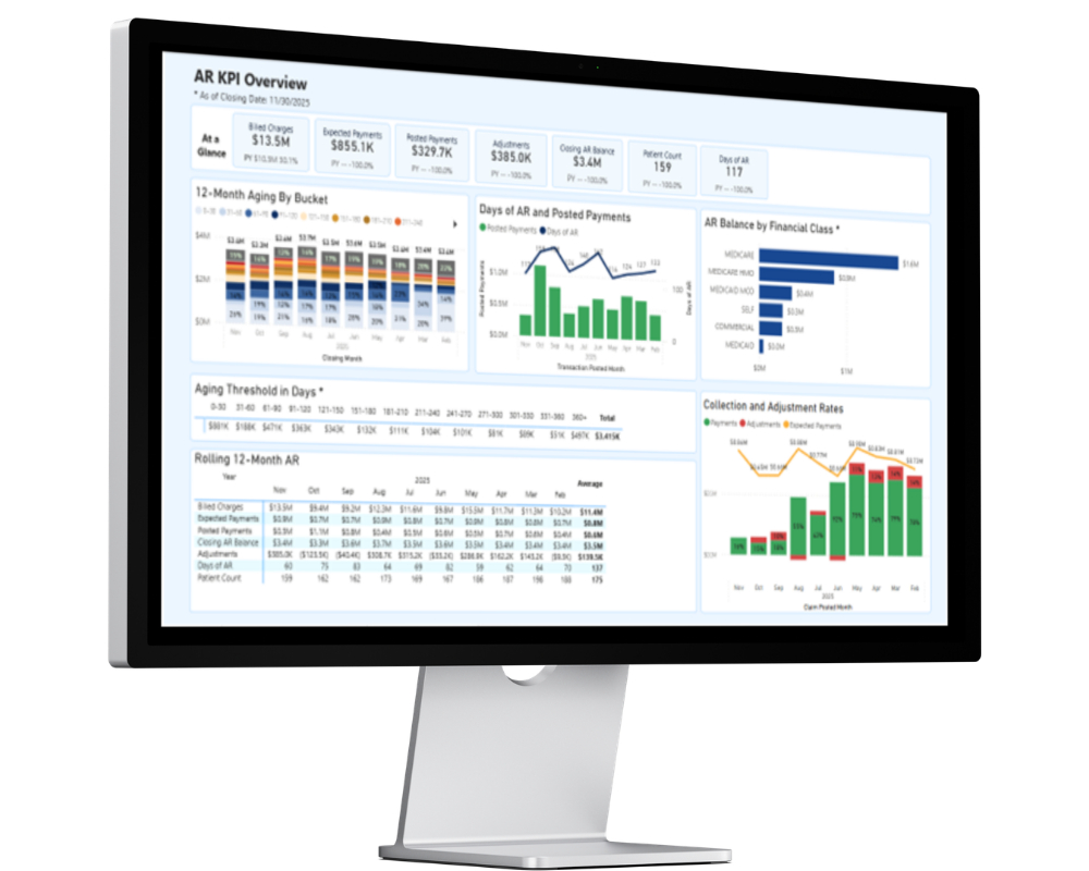 Real-time visibility into dialysis revenue cycle performance to identify risk, reduce denials, and improve cash flow.
