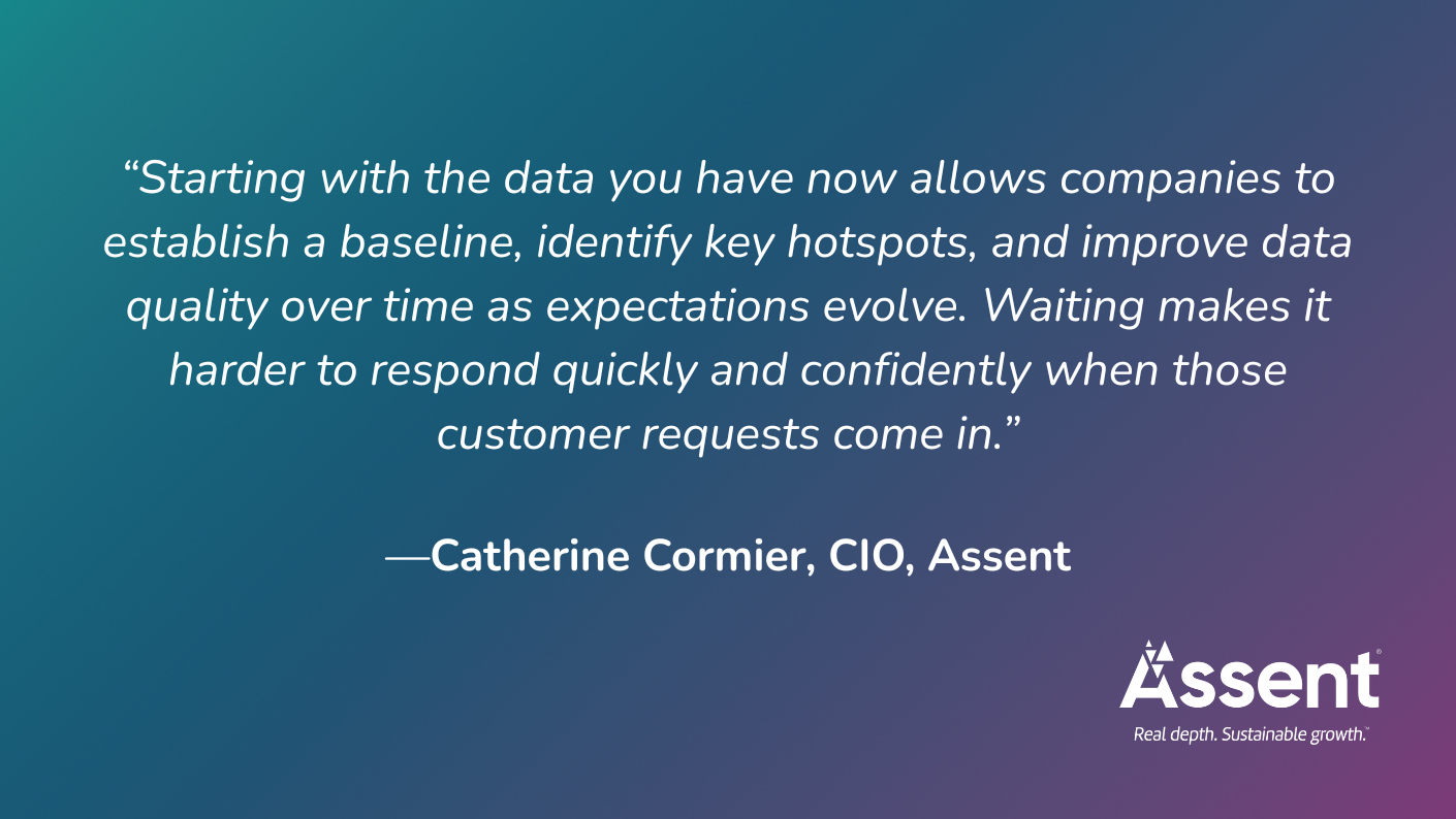 « Le plus gros challenge n’est pas le calcul en soi », explique Catherine Cormier, directrice de l’innovation chez Assent. « Le plus gros obstacle, surtout lorsqu’il s’agit de vastes portefeuilles de produits complexes, réside dans la collecte et l’organisation de toutes les données. En partant des données dont elles disposent actuellement, les entreprises peuvent établir une base de référence, identifier les points sensibles et améliorer la qualité des données au fil du temps, au fur et à mesure que les attentes évoluent. L’attente rend plus difficile toute réponse rapide et assurée lorsque ces demandes clients arrivent. »