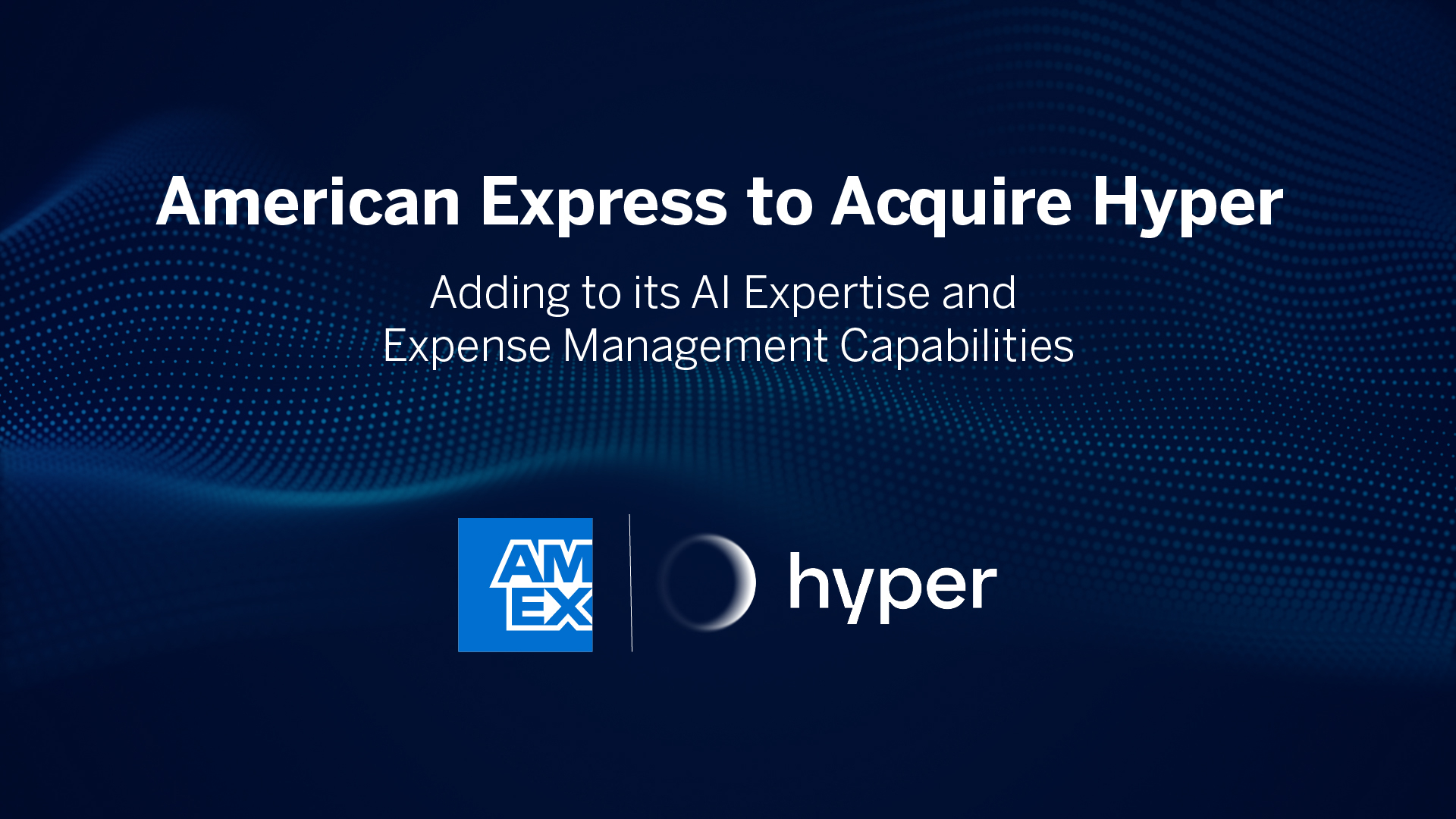 NEW YORK--(BUSINESS WIRE)--American Express today announced that it has entered into an agreement to acquire Hypercard (Hyper), an agentic expense management company, adding to Amex’s AI expertise and capabilities across its commercial services business. Hyper’s team of AI experts will help American Express continue to build agentic tools and AI-powered solutions that help businesses automate processes and simplify operations.