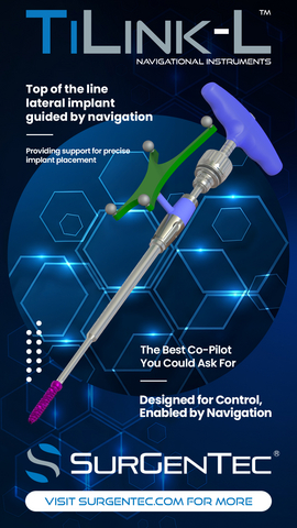 SurGenTec is a privately held medical device company dedicated to advancing spine and orthopedic surgery through innovative, minimally invasive technologies. Focused on improving clinical outcomes and addressing unmet needs in sacroiliac joint treatment, the company offers a comprehensive portfolio that includes the TiLink™ SI Joint Fusion System featuring proprietary Nanotex® nano-surface technology, advanced bone graft solutions, and a range of precision-engineered implants and instruments designed to enhance surgical efficiency and performance. The navigation platform rollout will commence immediately.