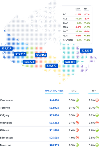 At a regional level, the western provinces continue to exhibit the highest average prices nationwide driven in part by higher demand for trucks and SUVs, and higher costs of living. The Atlantic provinces and Quebec remain the most affordable markets overall.