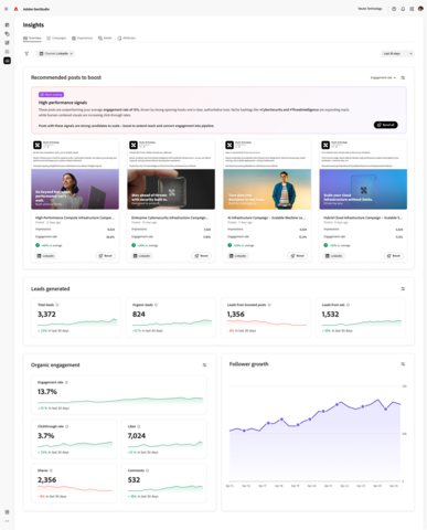 - GenStudio for Content Marketing: This new GenStudio module will enable enterprises to turn long-form documents and videos into tailored campaigns, and create customer case studies, web articles and more—with performance insights including leads generated, follower growth and audience reach recommendations.