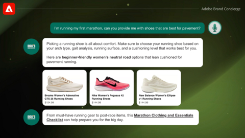 - Agent-powered conversational experiences: Consumers are embracing LLM interfaces to discover and engage their favorite brands. Data from Adobe showed that during the 2025 holiday season, AI traffic to retail sites (users clicking a link) jumped 693% year-over-year, as shoppers engaged with AI to locate specific products or find deals. DICK’S will leverage Adobe Brand Concierge to address this shift in consumer preferences, delivering immersive conversational experiences on its mobile app. AI agents (acting as digital coaches) will guide DICK’S athletes in their journey from personalized product recommendations informed by specific athlete needs to tailored training tips. Anchored in timely and relevant data, teams can also ensure that every agent interaction is customized and reacts to athletes’ changing preferences.
