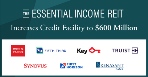 PASADENA, Calif.--(BUSINESS WIRE)--ExchangeRight, one of the nation’s leading providers of diversified REIT and DST investments, has announced that the committed capacity for the Essential Income REIT’s revolving line of credit has increased from $185 million to $600 million, in keeping with the REIT’s continued growth. Wells Fargo serves as the lead arranger of the Credit Facility, with Fifth Third Bank, KeyBanc Capital Markets, and Truist Bank as joint lead arrangers, and including Synovus, First Horizon Bank, and Renasant Bank as additional lending participants.