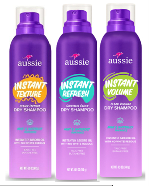 A: The new Aussie Dry Shampoo collection is available now at Walmart.com, CVS, Dollar General, and Kroger.