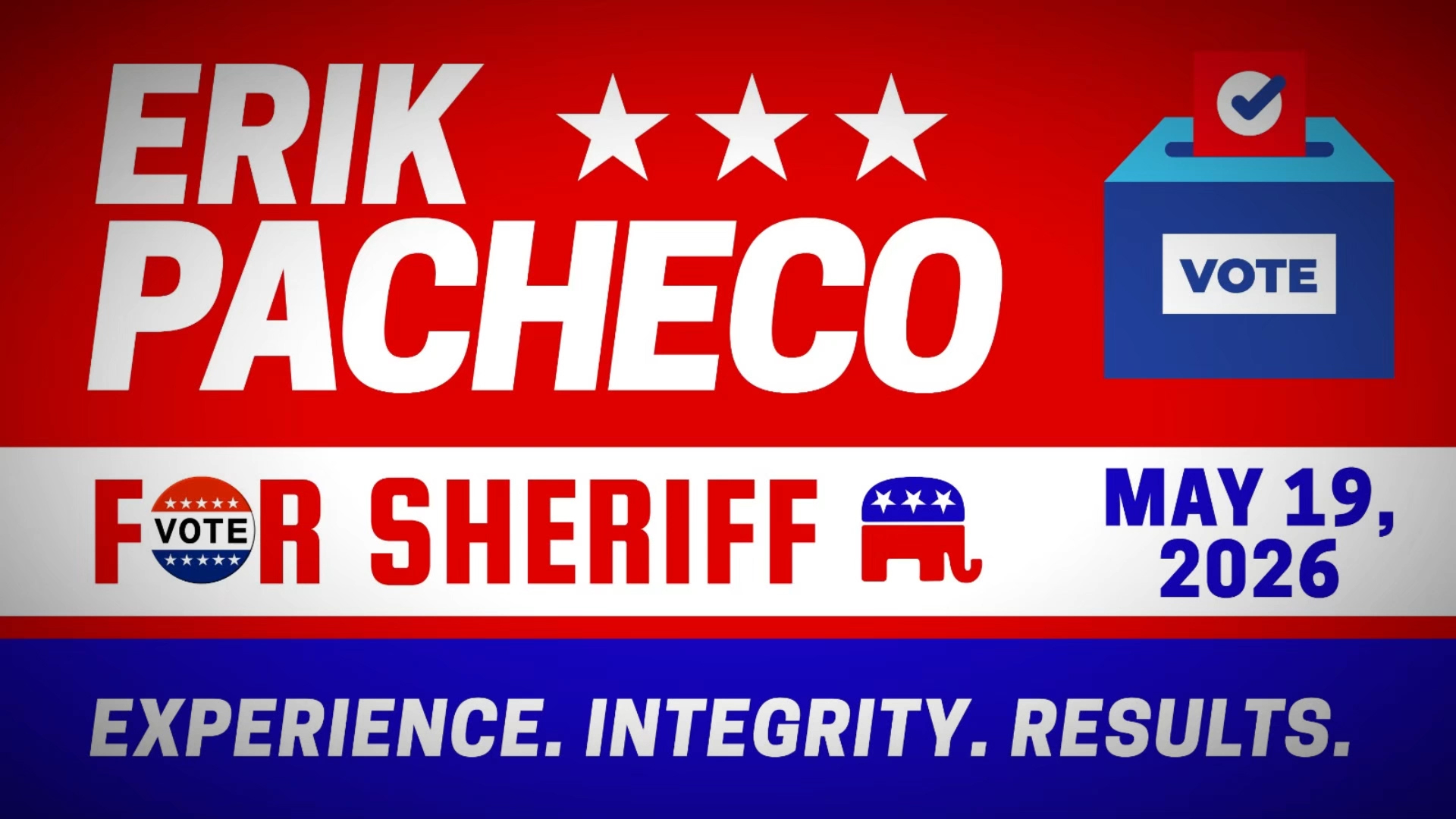 Erik Pacheco’s background is not a talking point. It is a career. His more than 36 years of military and law enforcement service represent a foundation of discipline, leadership under pressure, and an unwavering commitment to the people he has sworn to protect. He has led from the front, not from a distance, and his approach to public safety is grounded in the kind of day-to-day accountability that communities deserve from their highest-ranking law enforcement official.