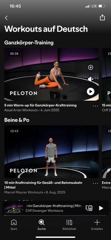 Ab heute steht Spotify Premium-Abonnent:innen eine kuratierte Auswahl an Kraft-, Yoga-, Pilates-, Barre-, Stretching-, Floor-Cardio-, Meditations- und Outdoor-Kursen - unter „Workouts by Peloton“ - innerhalb der neuen Fitness-Kategorie von Spotify zur Verfügung. Die Inhalte umfassen Kurse in englischer, spanischer und deutscher Sprache, die von den beliebten Peloton-Trainer:innen geleitet werden. Das Angebot wird regelmäßig um neue Inhalte und Disziplinen erweitert.