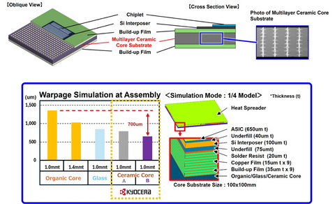 - Highly rigid multilayer ceramic core substrate resists deformation (warpage), enhancing performance and reliability in large semiconductor packages.