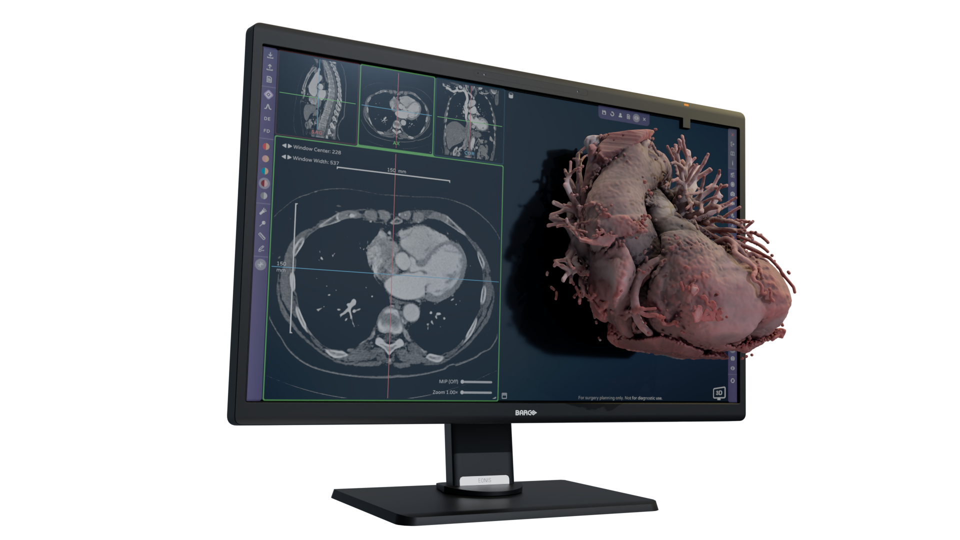 Eonis Vision, developed by Avatar Medical and Barco, is the world's first clinical-grade, glasses-free 3D medical imaging platform. During consultations, patients and physicians view hyper-realistic 3D models of the patient's own anatomy together in real time, replacing flat, monochrome scans with an intuitive shared view of conditions, tumor locations, and surgical plans. The result is faster comprehension, stronger trust, and more confident decision-making on both sides of the conversation. Eonis Vision combines Avatar Medical's FDA-cleared 3D imaging software, Barco's glasses-free 3D display.