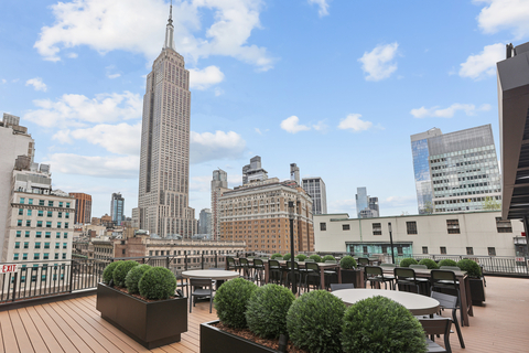 The rooftop features a broad variety of open and cabana seating areas, a wet bar, full audio and video capabilities, multiple charging stations, dedicated event and catering partners, and stunning, unobstructed views of the iconic Empire State Building. Events can be reserved for up to 250 guests for corporate gatherings, client events, team celebrations, and more.