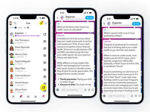 Snapchat’s AI Sponsored Snaps ad format is designed to allow users to engage with Experian through an AI-powered conversational experience, asking questions and receiving clear, contextual responses in a natural, back-and-forth dialogue covering common financial topics such as understanding credit, managing expenses, protecting personal information, and navigating everyday financial decisions. The experience is grounded in Experian’s longstanding credit and financial expertise and is designed for learning and awareness while in the app for a seamless experience. The experience provides general information to help people learn and does not provide personalized financial, legal, tax, or credit advice.