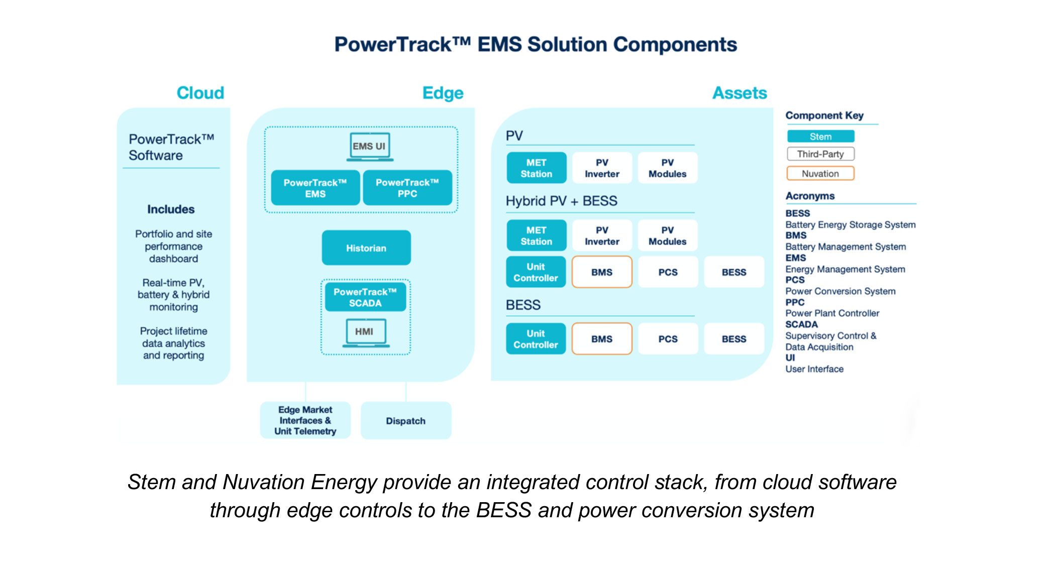 The agreement brings together Stem’s PowerTrack Energy Management System (EMS) and Unit Controller with Nuvation’s Battery Management System (BMS), creating an integrated control layer designed to meet growing demand for secure, compliant, and domestically sourced energy infrastructure. PowerTrack EMS provides site-level scheduling, utility dispatch, grid coordination, and edge-to-cloud telemetry, while Nuvation’s BMS delivers cell-level monitoring, protection, and state-of-charge optimization. Together, they create a more integrated and intelligent battery energy storage solution and a North American-designed and manufactured control solution.